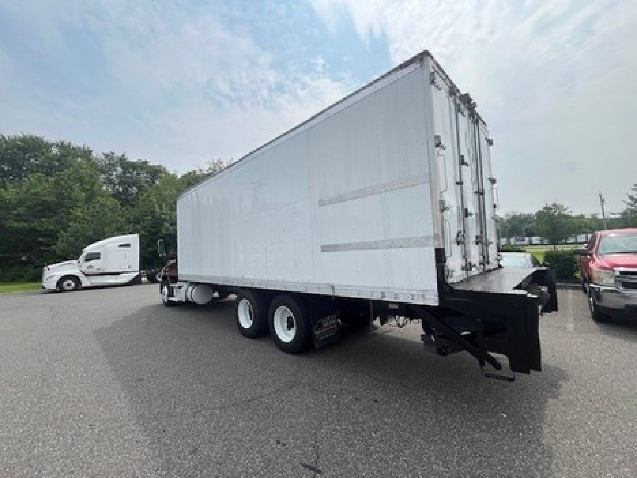2015 tandem axle Freightliner Cascadia reefer truck, DD13 Detroit engine, 450 horsepower, with a big liftgate