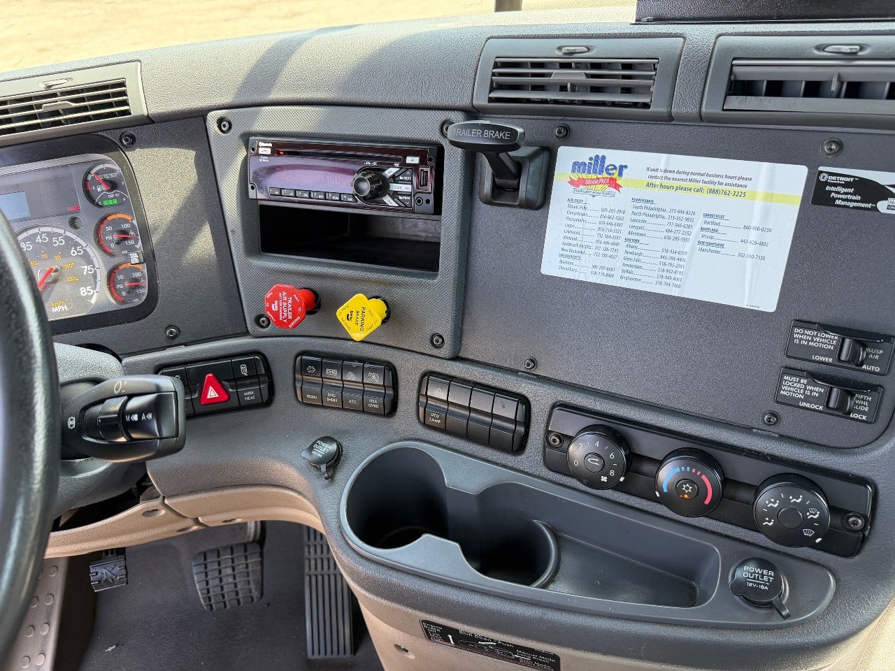 2019 Freightliner Cascadia single axle daycab, Detroit engine, DD13, 410 horsepower, automatic transmission. Unit has been owned and maintained by Miller Truck Leasing since new. Purchase with confidence. Looking for service after the sale? Miller Contract Maintenance may be you solution. Utilize Miller locations throughout the Mid-Atlantic & Northeast Regions and beyond through our National Lease affiliates! Need help with Financing? Miller Used Truck Center offers a full service finance department here to help you with competitive rates and get you moving forward quickly. After-Market extended service agreements available nationwide!